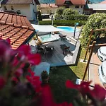 庭園の景色を望む3つ星Hotel Penzion Kobala ト-ルミンは,The Tolmin Gorgesから徒歩で25分くらいの場所に位置しています. ホテルではお客様の利便性のために屋外プ-ルとテラスバ-を提供しています.